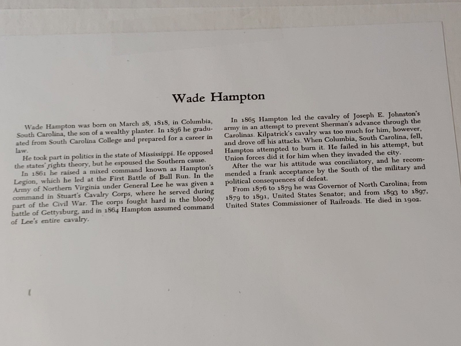 New! Civil War Photo Currency Reproduction Wade Hampton 14x11 Matted Sealed