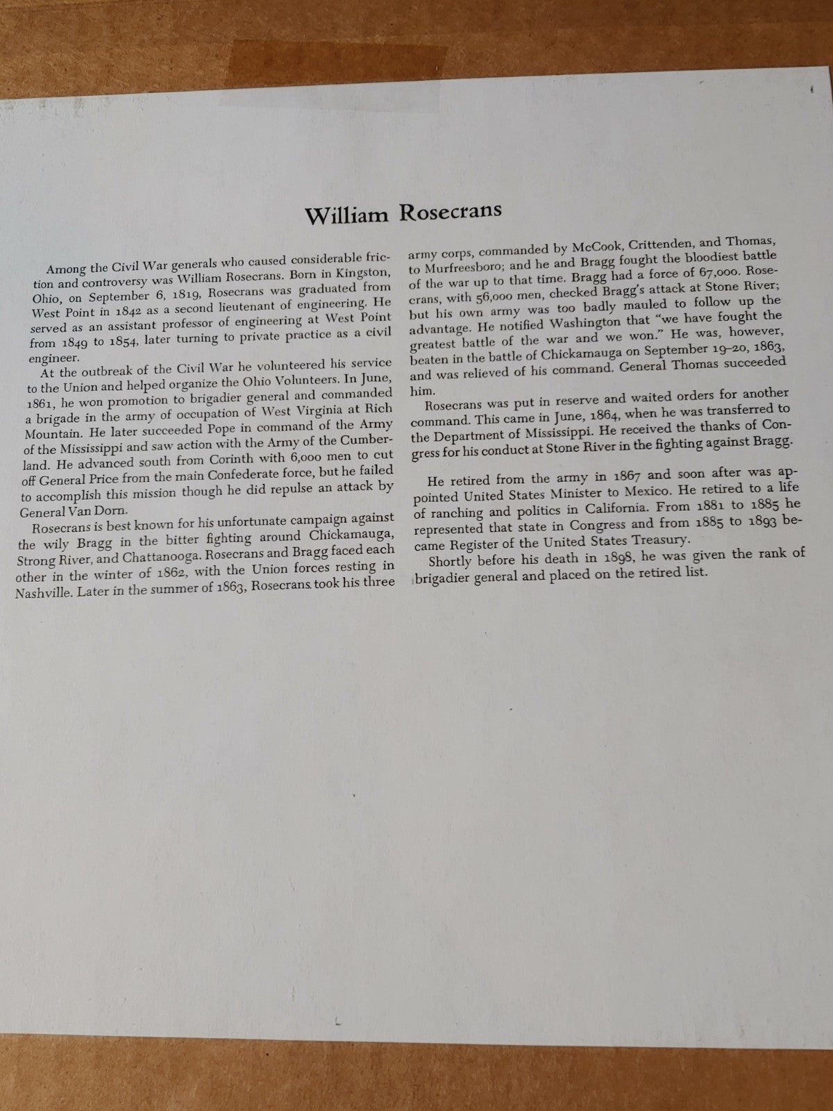 New! Civil War Photo Currency Reproduction William Rosecrans 14x11 Matted Sealed
