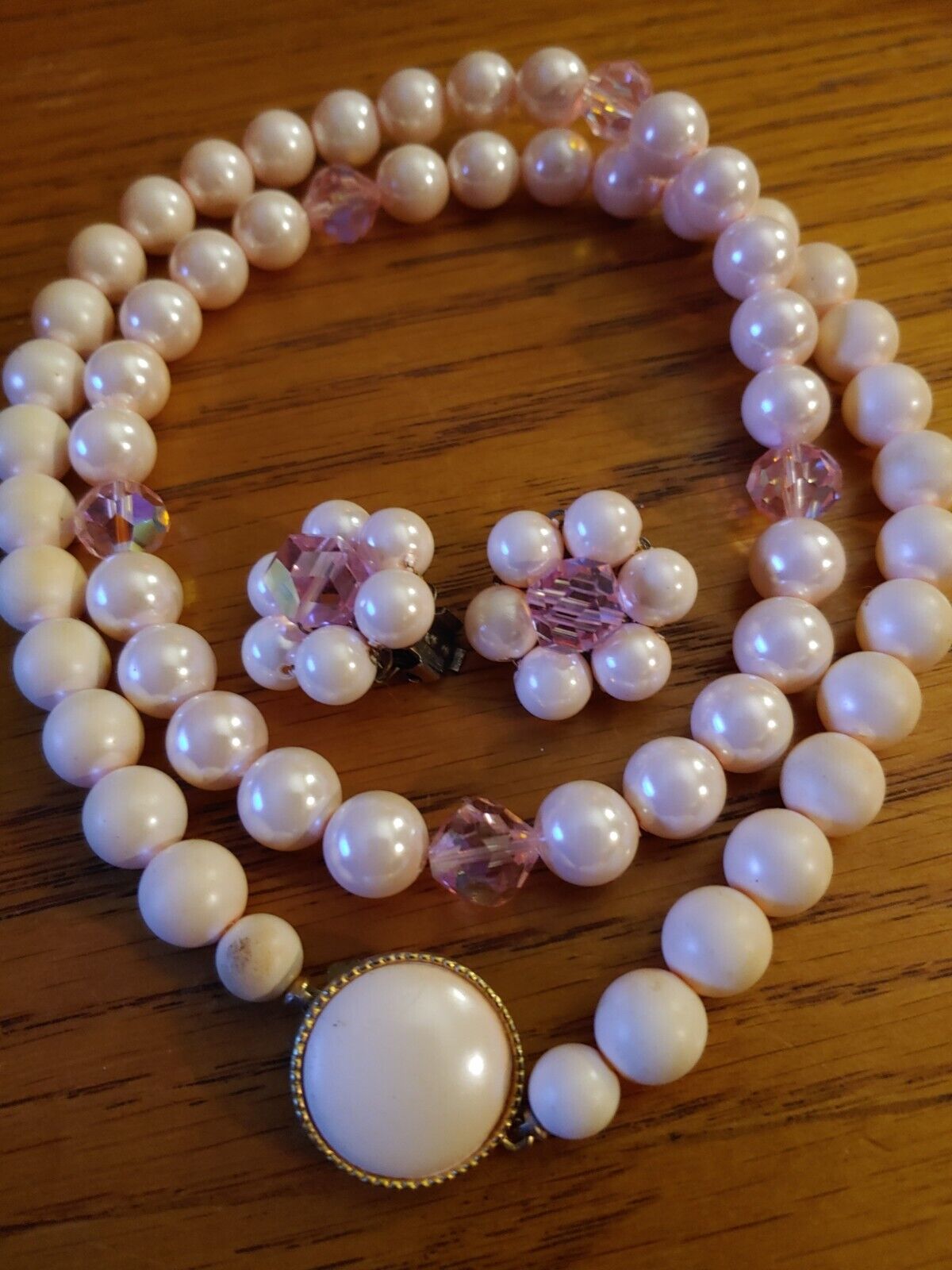 REDUCED! Double Pearl Bead Necklace about 20" w/Earrings Great Condition